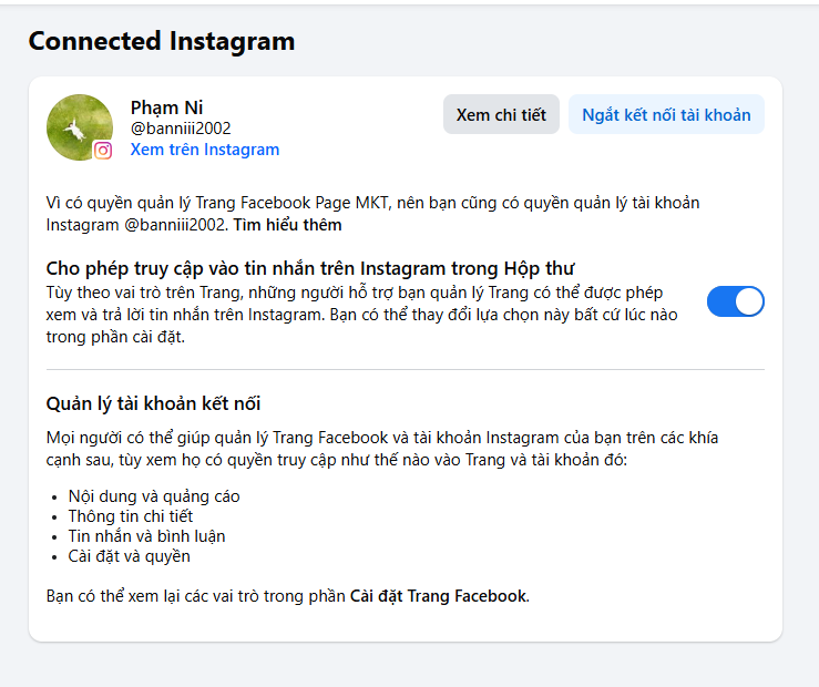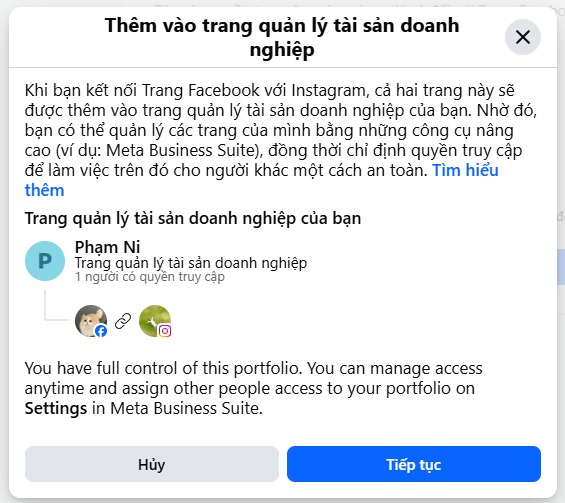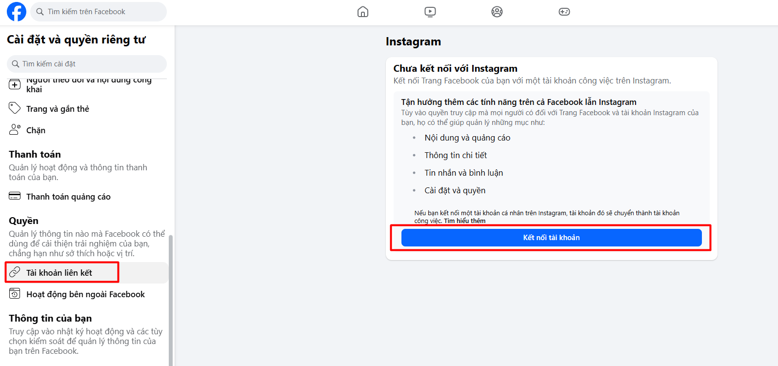Kết nối tài khoản Instagram Business với trang Facebook của bạn: